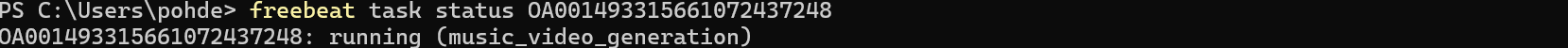 freebeat task result task-123Here is an example of checking on the status of the task: