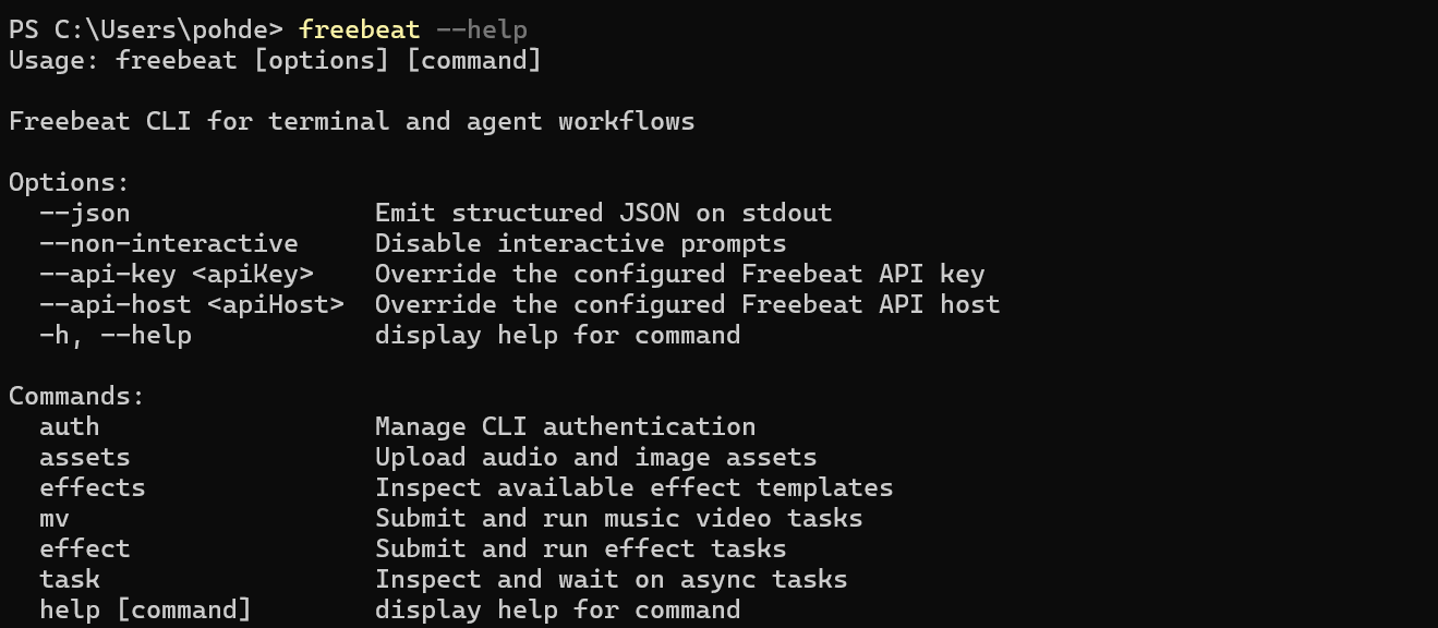 This makes it easier to incorporate Freebeat into development pipelines, batch processes, or AI-assisted workflows, giving users a more flexible and efficient way to produce and experiment with music video content.